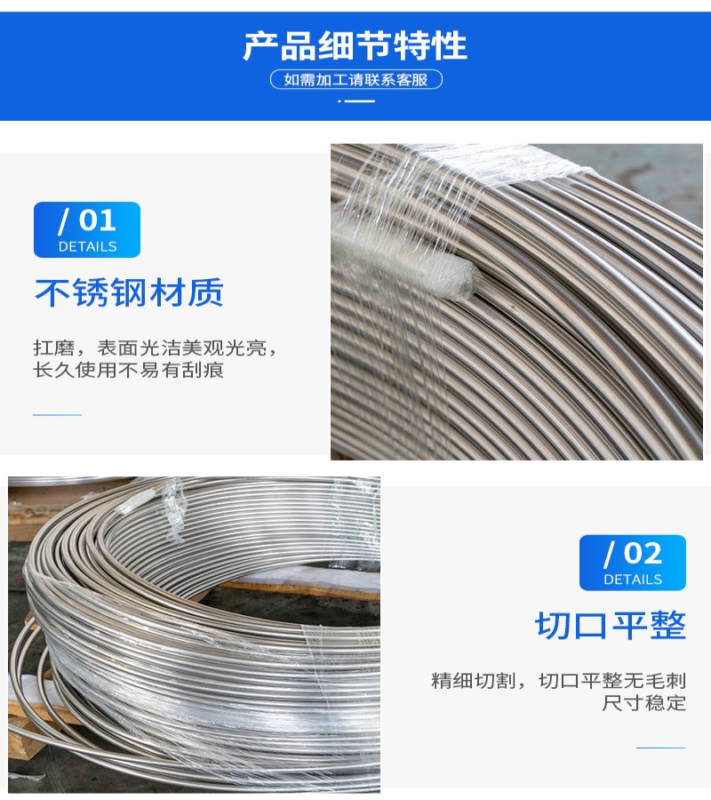 1、首先(xiān)選用的不鏽鋼管必須是不鏽(xiù)鋼無縫管,也就是不鏽鋼無(wú)縫盤(pán)管(問什(shí)麽呢?因為不(bú)鏽鋼盤管必須承受(shòu)20兆(zhào)帕(pà)的壓力,一般常見的不鏽鋼焊管壓力達不到),而且必須是冷***的不鏽鋼無縫管;2、不鏽鋼管的壁厚在1.5-3.0...
